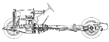 Il cambio di velocità è a quattro rapporti e marcia indietro su trains balladeurs, con quarta in presa diretta e leva di comando al centro. La trasmissione è ad albero, con un solo cardano e coppia posteriore, a dentatura spiroidale Greason. Il ponte posteriore è in acciaio stampato. I freni a pedale sulle quattro ruote, quello a mano sulle ruote posteriori o sulla puleggia del cambio. Il telaio in profilato d’acciaio a C da 3 mm si avvale di sospensioni ad assali rigidi, con molle a balestra semiellittiche.